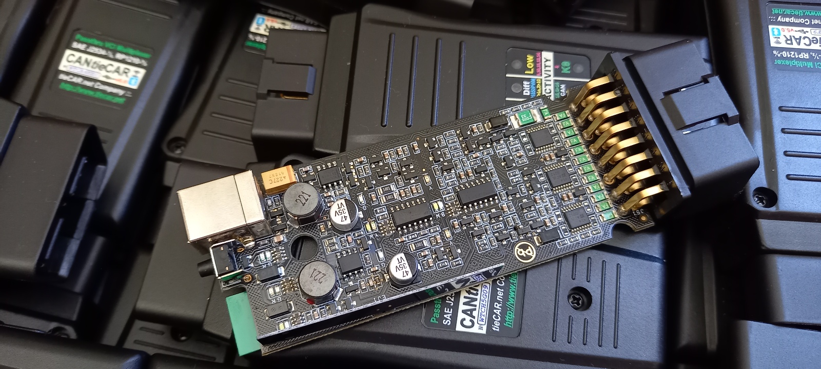 - built-in analog switches multiplexer for OBDII-pins 1,2,3,6,8,13 and 8,9,10,11,12,14 with cross-link for the MFLs