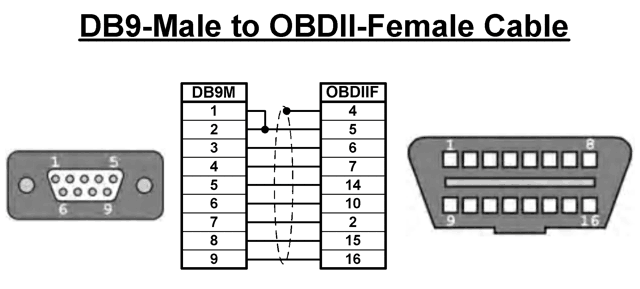 OBDII-Female to DB9-Male Cable - 1.2 m